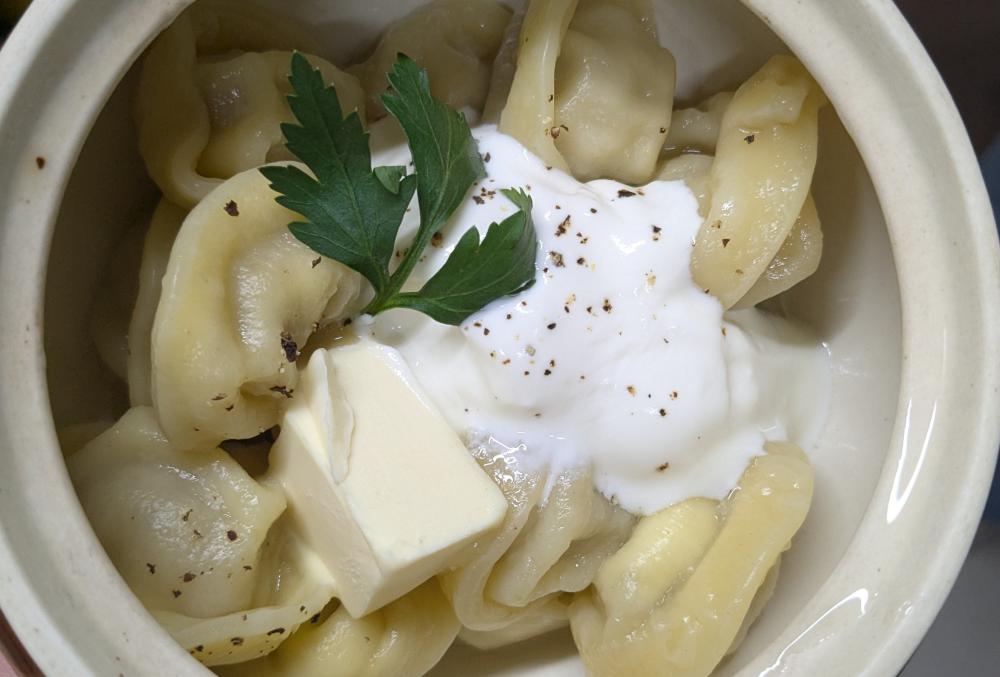 По Вашему желанию с бульоном, сметаной и зеленью.